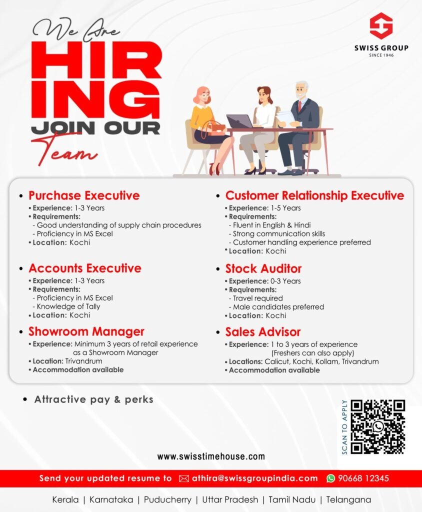 Send your updated resume to athira@swissgroupindia.com
